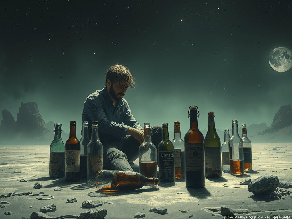 Pangeran kecil melanjutkan perjalanannya, tiba di sebuah planet yang dipenuhi oleh keheningan berat. Di tengah planet itu, ia menemukan seorang pria yang duduk sendiri di antara botol-botol kosong dan botol-botol penuh. Udara di sekitar pria itu berbau alkohol, dan wajahnya muram, seperti seseorang yang tenggelam dalam kesedihan yang tak dapat dijelaskan.