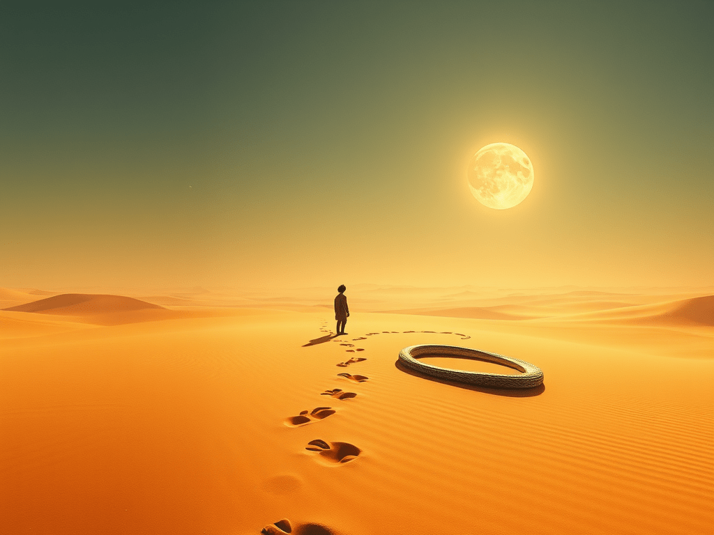 Saat itulah ia bertemu dengan sesuatu yang hidup: seekor ular yang panjang dan ramping, berwarna seperti pasir, hampir tak terlihat di tengah lanskap yang monoton itu. Ular itu memandangnya dengan mata yang tajam dan penuh misteri.