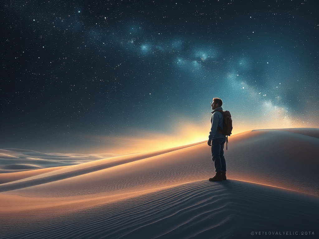 Hatinya terasa kosong, seperti ada bagian yang hilang, sebuah ruang hampa yang dingin. Udara malam membelai wajahnya, membawa sisa-sisa kenangan yang berputar-putar dalam pikirannya. Gurun ini, yang dahulu hanyalah hamparan pasir tanpa makna, kini terasa penuh dengan cerita dan jejak-jejak yang tak terlihat.